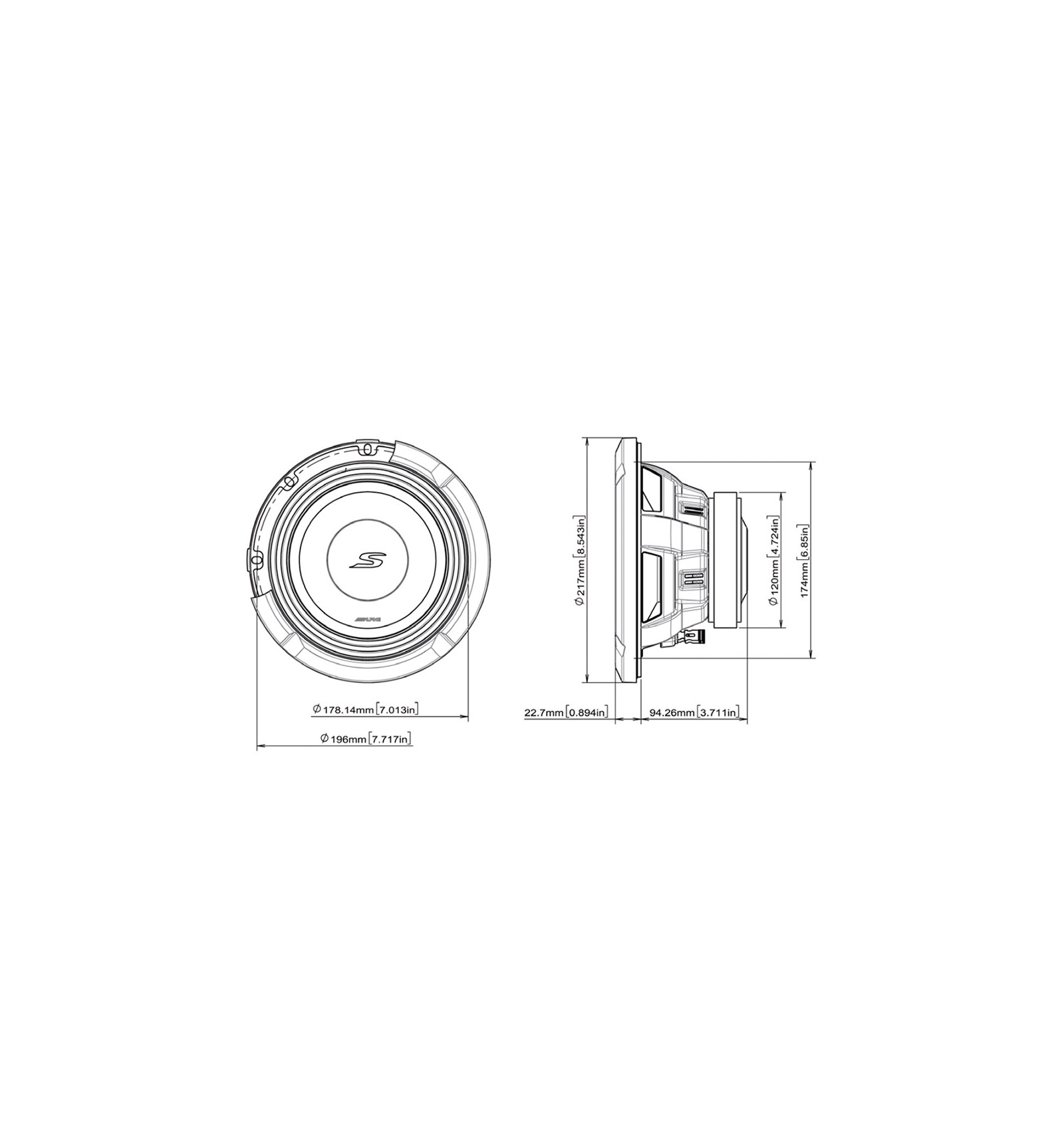 ALPINE S2-W8D2 SUBWOOFER DE 20CM (8″), 2Ω, 900W