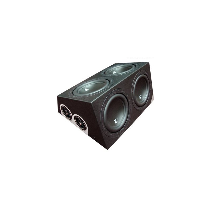 Subwoofer dublu activ in incinta cu radiatoare pasive, difuzoare de 25cm (10"), putere 1200W RMS, frecventa 30-200Hz, impedanta 2x2 ohmi, incinta MDF de 18mm, finisaj tip piele